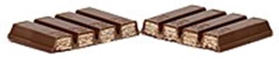 Even if the Kit Kat® brand name itself is both registered and well known, Nestle, the global owner and producer of the KitKat® bar (except in the U.S. where the product is made under license by Reese’s, a Hersey Company), has had a very difficult time protecting the shape of the product itself in Europe. The 4 fingered Kit Kat shape which is the subject of Nestle’s registration in the EU (split in half) is shown below: